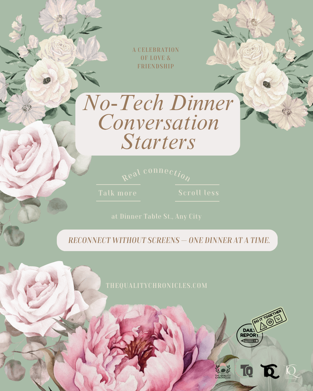 No screens. Just stories. With a few fun prompts, your dinner table can become the best Wi-Fi free zone in the house. So go ahead! Unplug, pass the potatoes, and reconnect over conversations that make everyone smile.